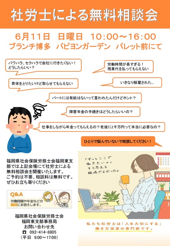 6月11日(日)に無料相談会を開催します!(ブランチ博多パピヨンガーデン) 2023年05月19日 福岡東支部では、無料相談会を開催します。 日時:令和5年6月11日(日)10時~16時00分 会場:ブランチ博多パピヨンガーデン 予約不要 詳細は、ご案内チラシ↓↓をご覧ください。 戻る